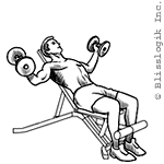 ➊ Change posture on your back on associate in nursing incline bench and grab a dumbbell with every hand to the body height, elbows simply slightly arched.
